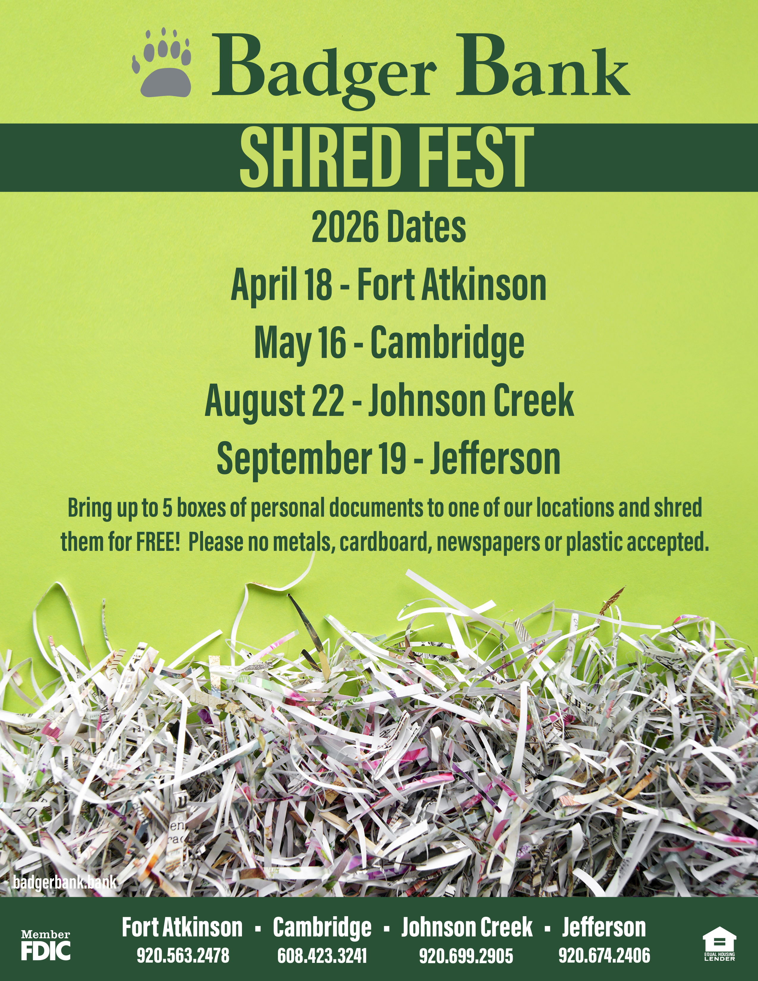 - Shred Fest - Fort Atkinson: Saturday, April 18, 2026 9:00am-11:00am